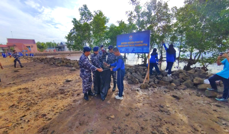 Jaga Ikon Wisata Kutai Timur, Lanal Sangatta Gelar Aksi Bersih Pantai di Kenyamukan