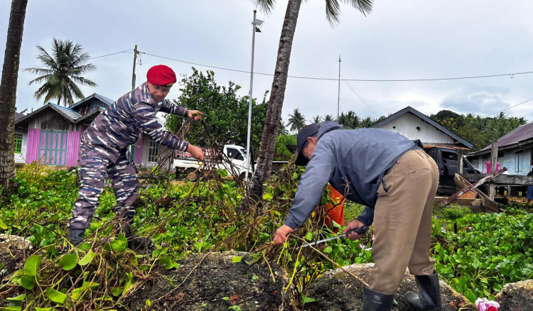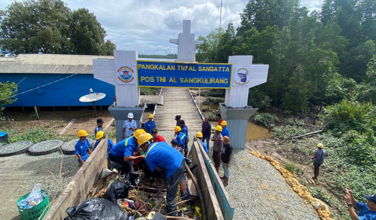 Pos TNI AL dan Warga Tanjung Mangkalihat Gelar Aksi Bersih Pantai