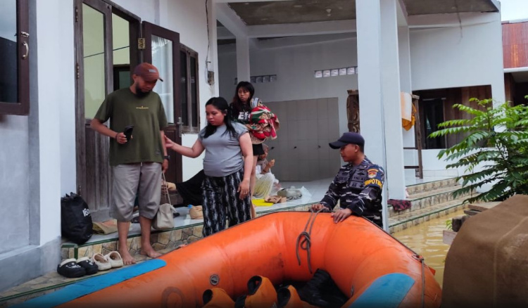 TNI AL dan BPBD Bontang Evakuasi Ibu Hamil dari Banjir Setinggi 1 Meter