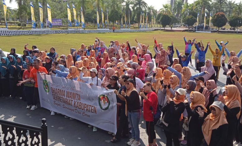 Salah satu kegiatan yang digelar pada Jumat (6/10/2023) kemarin adalah pemeriksaan kesehatan dan senam olahraga. Kegiatan ini diikuti oleh segenap Perangkat Daerah (PD) dan Pengurus DWP.