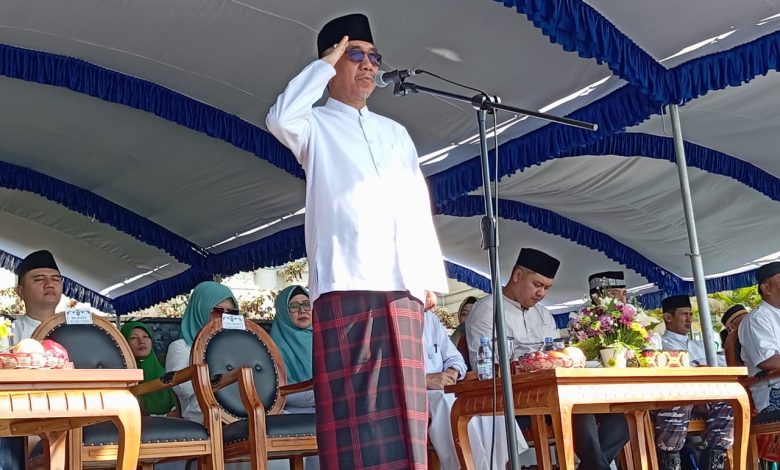Sangatta, Citizens.co.id – Bupati Kutai Timur (Kutim) Ardiansyah Sulaiman mengajak para santri untuk menjadi contoh bagi masyarakat. Hal ini disampaikannya saat memimpin apel upacara peringatan Hari Santri Nasional (HSN) di halaman Kantor Bupati, kawasan Bukit Pelangi, Sangatta Utara, Minggu (22/10/2023).