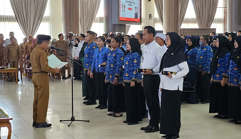 “Tunjukkan dedikasi dan loyalitas dalam bekerja, untuk memberikan pelayanan publik yang bermutu. Patuhi dan ikuti segala peraturan dan ketentuan yang ada di dalam perjanjian kerja yang telah ditandatangani. Tumbuhkan disiplin dan etos kerja yang tinggi dalam melaksanakan tugas pokok dan fungsi dengans ebaik-baiknya, jadikan momentum ini untuk memulai membangun kapasitas diri dan bekerjalah dengan semangat, cerdas, melayani dengan sepenuh hati dan tetap menjaga kinerja, dedikasi serta loyalitas,” tegasnya disaksikan Wabup Kutim Kasmidi Bulang, Seskab Rizali Hadi, Kepala BKPSDM Misliansyah dan jajaran Forkopimda yang hadir.