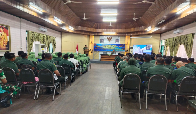 KUTAI TIMUR – Kodim 0909/Kutai Timur menggelar sosialisasi penyelenggaraan Bimbingan Mental (Bintal) satuan Triwulan I TA 2025 untuk prajurit dan persit, pada Rabu (19/2/2025). Kegiatan yang berlangsung di aula Makodim 0909/KTM ini mengusung tema “Meningkatkan dan Memantapkan Mental Prajurit sehingga Memiliki Kejuangan yang Tangguh Dalam Setiap Pelaksanaan Tugas”.