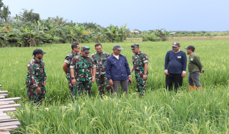 KUTAI TIMUR – Dandim 0909/Kutai Timur, Letkol Inf Ginanjar Wahyutomo, mendampingi tim Kementerian Pertanian RI melakukan peninjauan lahan ketahanan pangan di Kecamatan Sangatta Selatan, Kabupaten Kutai Timur, Jumat (7/2/2025).