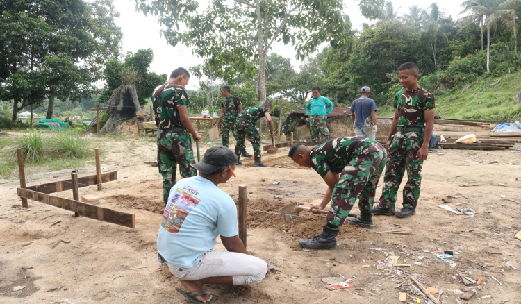 “Kami melaksanakan pengerjaan pondasi untuk mempercepat proses pembangunan agar segera dapat dihuni oleh Bapak Rahman, mengingat saat ini beliau masih menumpang di rumah warga lain,” ujar Lettu Suhendri.