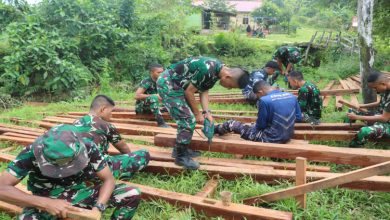 KUTAI TIMUR – Satuan Tugas (Satgas) Tentara Manunggal Membangun Desa (TMMD) ke-125 Kodim 0909/Kutai Timur sedang membangun jembatan sepanjang 16…